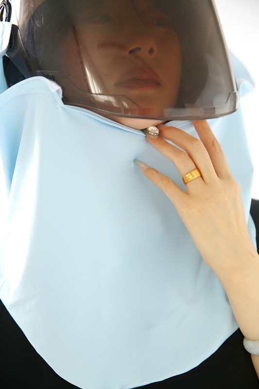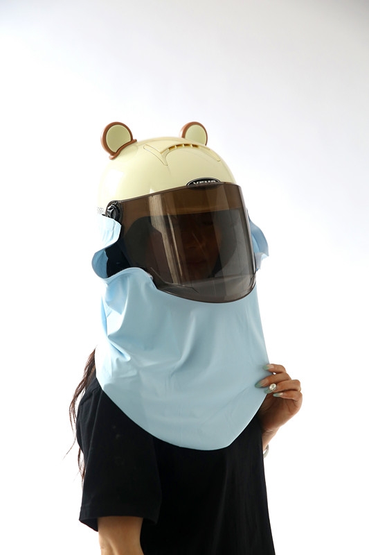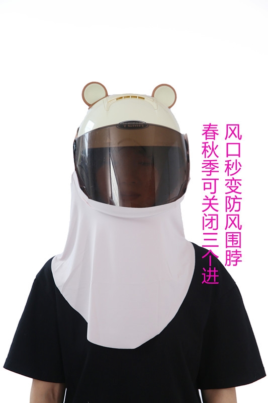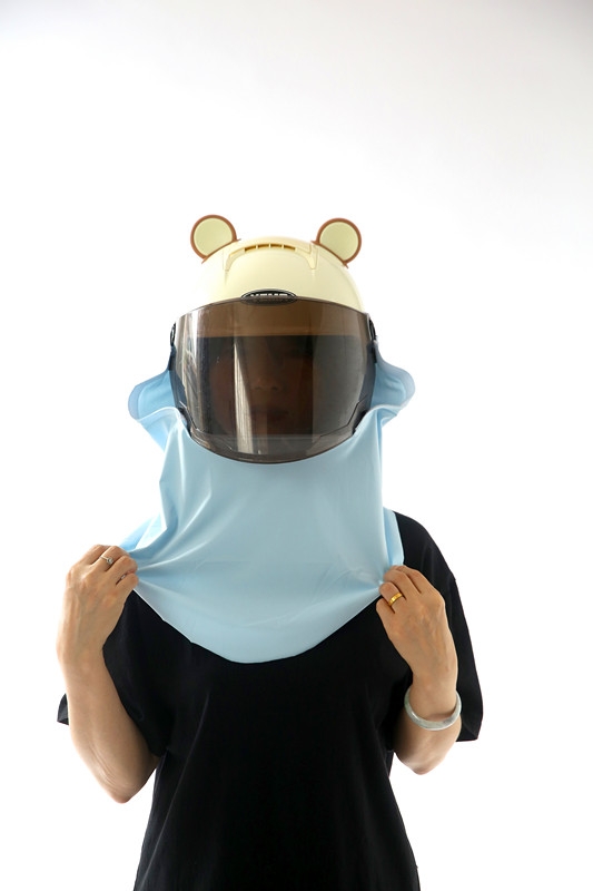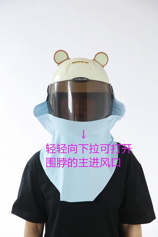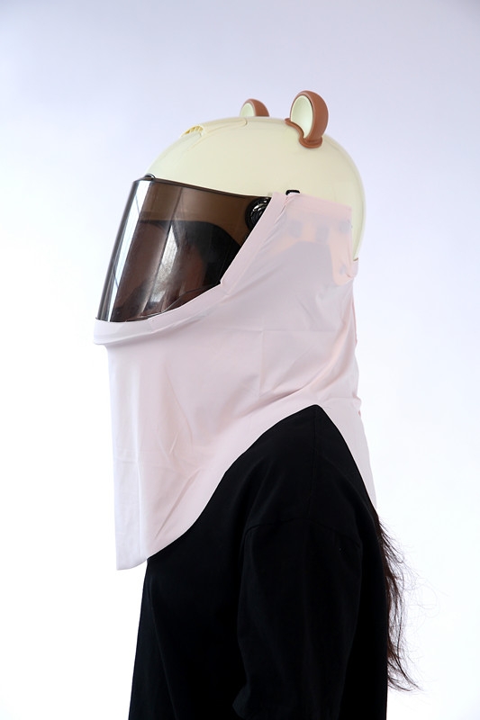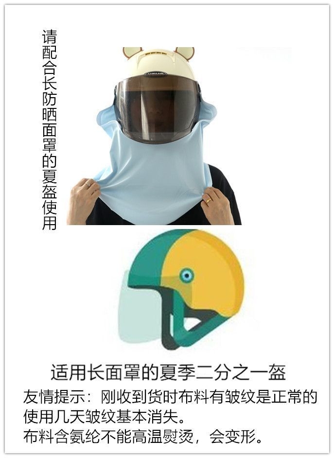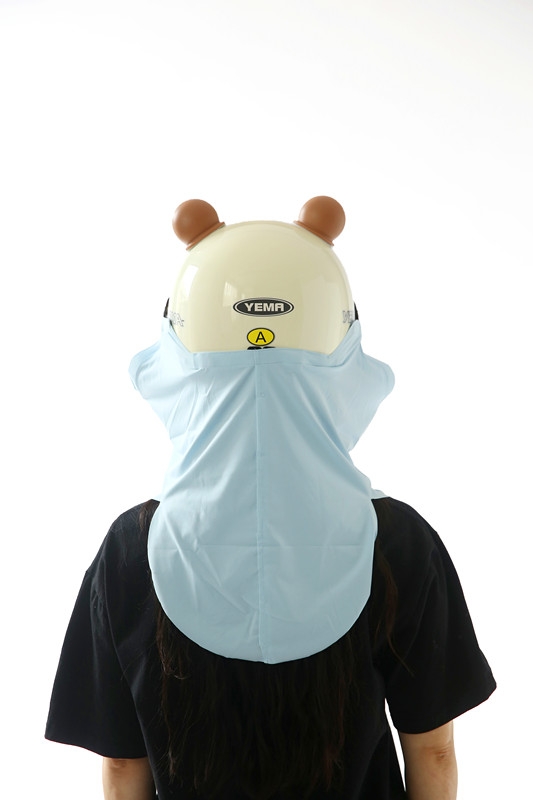 This is a scarf worn on a half helmet, with the function of 1.360 ° sun protection and UPF>50 effectively blocking 98% of ultraviolet rays. 2. Dual physical cooling (1) The scarf has three air intake channels, which can guide the wind blowing from the front to the rider's back during cycling, quickly cooling the rider's back. (2) The scarf is made of ice silk fabric, with a cool touch.
